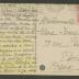 Tarjeta postal con mensaje amical de Renée, dirigido a Elena Izcue. En el anverso, fotografía en blanco y negro del Banco de España, Madrid.