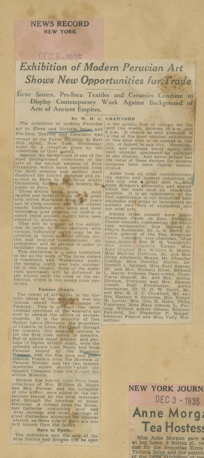 "Exhibition of 'Modern Peruvian Art' Shows New Opportunities for Trade" / M. D. C. Crawford