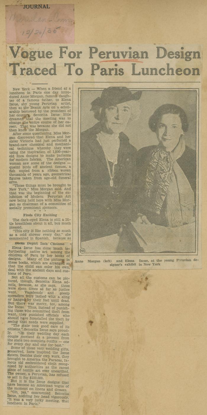"Vogue for Peruvian Design Traced to París Luncheon"