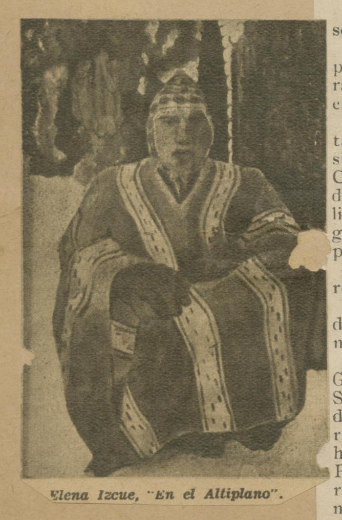 Reproducción de indígena sedente. Luce poncho listado y chullo.