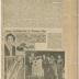 Recorte de periódico referente al éxito alcanzado por Elena y Vistoria Izcue tras su exposición de arte peruano en Nueva York. Incluye ilustraciones: una reproducción fotográfica de Elena Izcue, dibujos de felino del cuaderno "El arte peruano en la escuela", botones y pañuelos con diseños, hilandera de la publicación "Les enfants du soleil", fotografía en la que aparecen de pie: doctor Gros, director de la Clínica de Neuilly; Anne Vanderbilt; André Tardieu, Anne Morgan y Elena y Victoria Izcue y vista del montaje de la exposición.