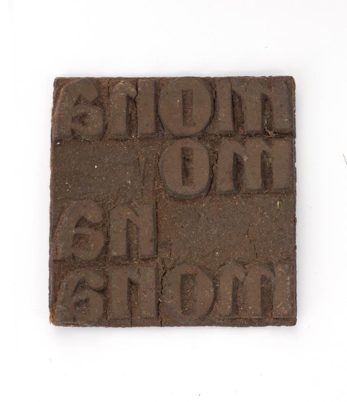 Matriz de linóleo con texto "mona mo na mona".