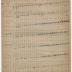 Ocho pentagramas con divisiones, numeradas en el lado izquierdo de la hoja con flechas que apuntan en distintas direcciones. Flechas y pentagrama incompleto en la parte superior. Al reverso, listado de notas musicales, operaciones matemáticas y bocetos de pentagramas pequeños.