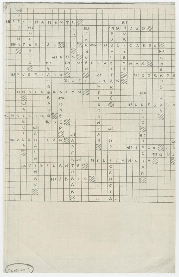 Crucigrama, inscripción en el extremo inferior izquierdo: "Cuadro 1"