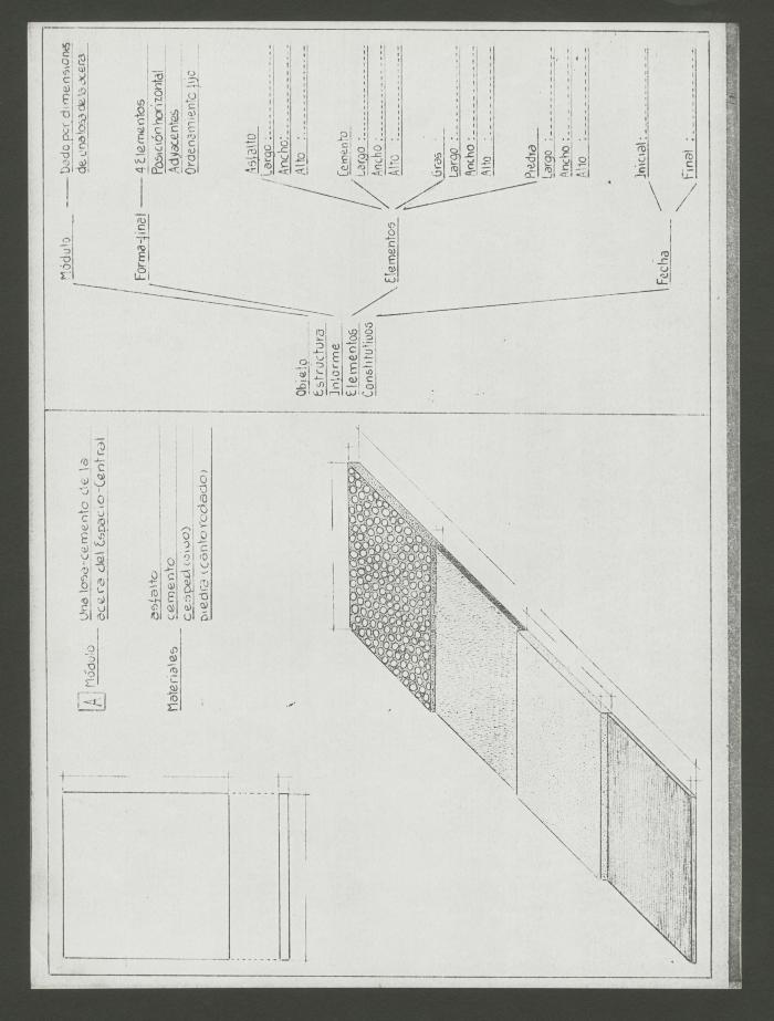 Boceto del módulo A y sus materiales. A la derecha, esquema en hoja horizontal. Objeto Estructura Informe Elementos Constitutivos: Módulo / Forma final / Elementos / Fecha.